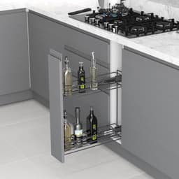 Caisse à bouteille avec rail de 150 mm et 2 étages à fond fil, idéale pour organiser et ranger les bouteilles en toute sécurité. Son design en anthracite s’intègre parfaitement aux cuisines modernes. Facile à installer, elle optimise l’espace et l’accessibilité.