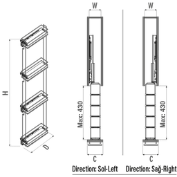 Caisse à bouteilles coulissante de 150 mm avec 4 étages et un fond en bois, disponible en version droite (R) et en couleur anthracite. Pratique et élégante, elle s'intègre parfaitement dans les meubles de cuisine ou de salon. Idéale pour un rangement organisé et accessible de vos bouteilles.