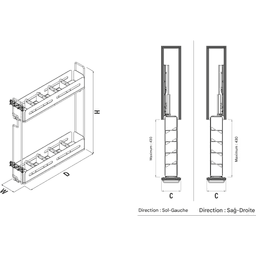 Porte-bouteille coulissante 150 mm avec séparateurs,Gauche