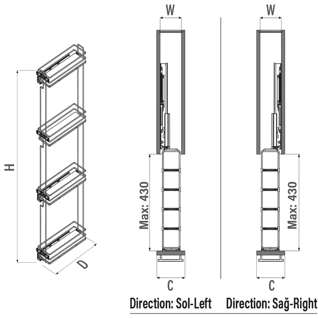 Caisse à bouteilles coulissante de 200 mm avec 4 étages et un fond en bois, disponible en version droite (R) et en couleur anthracite. Pratique et élégante, elle s'intègre parfaitement dans les meubles de cuisine ou de salon. Idéale pour un rangement organisé et accessible de vos bouteilles.