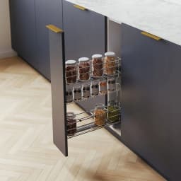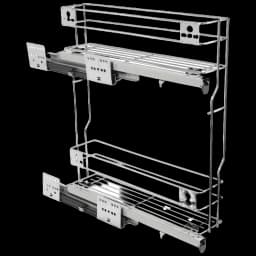 Porte-bouteille coulissante INOX fermeture douce pour caisson de cuisine, en acier chromé. Idéal pour un rangement pratique et élégant dans les espaces étroits.