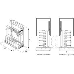 Porte-casserole coulissante 450 mm, Droite
