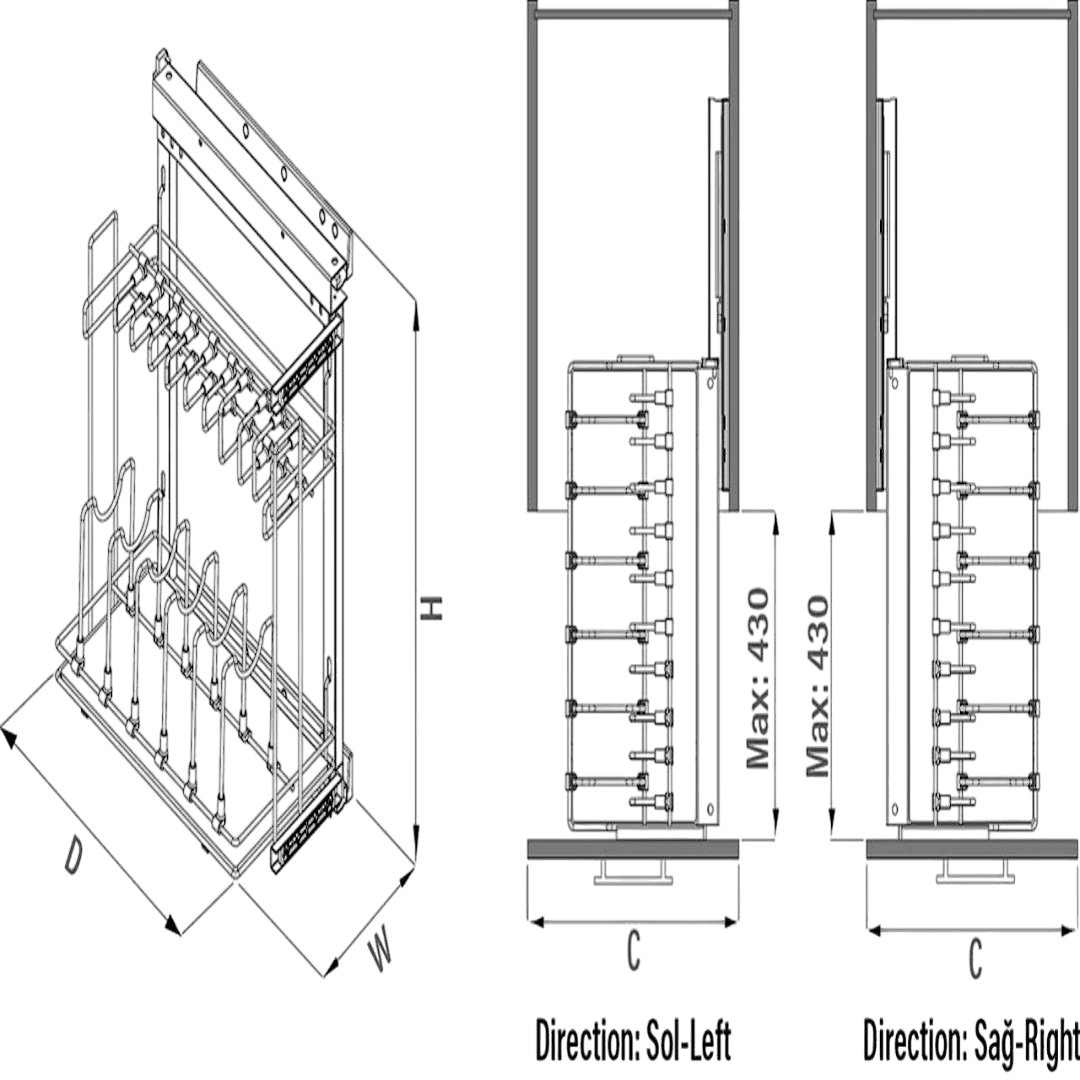 Caisse à casserole coulissante de 450 mm en anthracite, conçue pour une installation sur le côté gauche (L). Idéale pour optimiser le rangement, elle offre un accès facile et une organisation pratique. Robuste et esthétique, elle s'intègre parfaitement aux cuisines modernes.