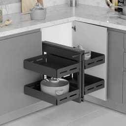 Caisse amovible de 500 mm B.U, conçue pour s'intégrer dans un caisson d'angle côté gauche (L). Son design en anthracite permet un rangement optimisé et un accès facile aux ustensiles. Pratique et esthétique, elle maximise l’espace de la cuisine.