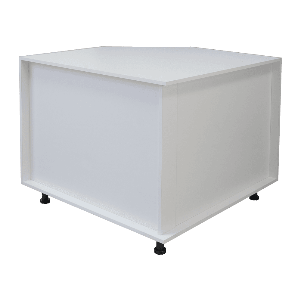 Le Caisson Bas Coin Chanfrein est un meuble de cuisine spécialement conçu pour s'adapter aux angles tout en offrant une esthétique soignée.