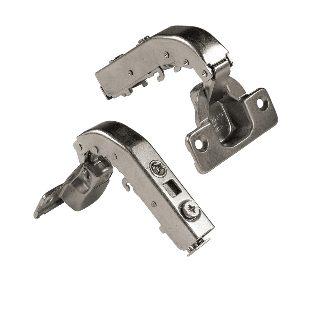Charnière 90° avec frein, conçue pour un mouvement fluide et une fermeture amortie. Idéale pour les portes d'armoires de cuisine et de meubles, offrant stabilité et durabilité.