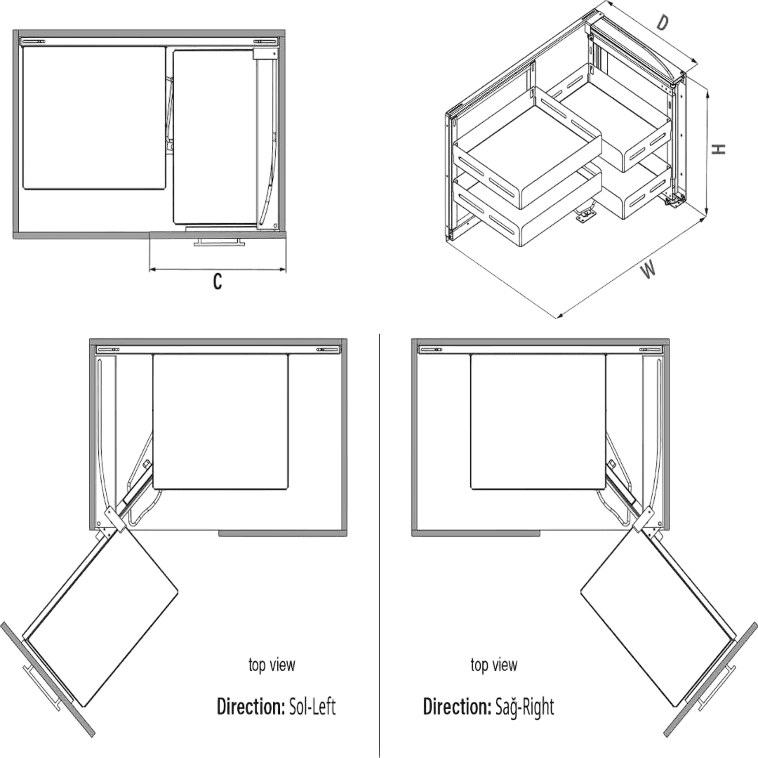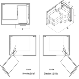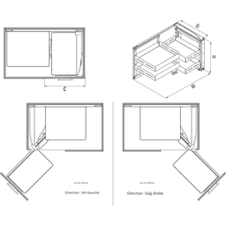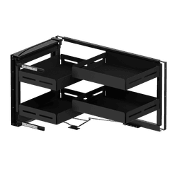 Coin magique de 500 mm B.U en anthracite, conçu pour une installation sur le côté droit (R) d’un caisson d’angle. Son mécanisme coulissant permet un accès facile et optimisé aux ustensiles. Idéal pour maximiser l’espace de rangement en cuisine.