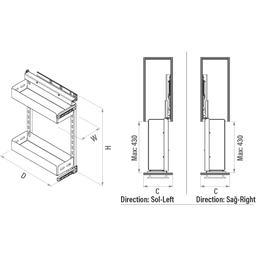 Étagères de rangement coulissantes avec 2 paniers bas ultra, conçues pour une installation à droite. Finition anthracite pour un design moderne et élégant, optimisant l’organisation de votre meuble de cuisine.