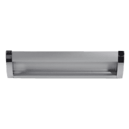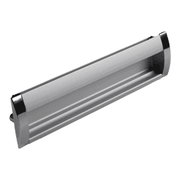 Poignée en métal à encastrer, nécessitant un fraisage pour le logement en face avant. Se fixe solidement par vis à l’arrière, offrant une prise discrète et élégante pour les meubles.