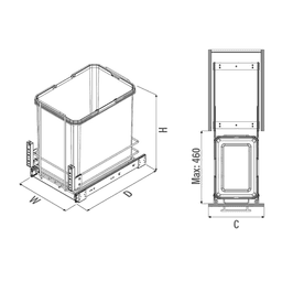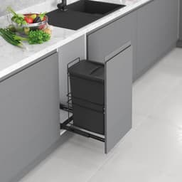 Poubelle coulissante de 300 mm avec un bac de 35 litres est un accessoire de cuisine pratique et élégant, disponible en couleur anthracite. Équipée d'un système à frein pour une ouverture et fermeture silencieuse, elle se monte facilement sur le fond et la face du meuble. Idéale pour optimiser l'espace et garder la cuisine organisée.