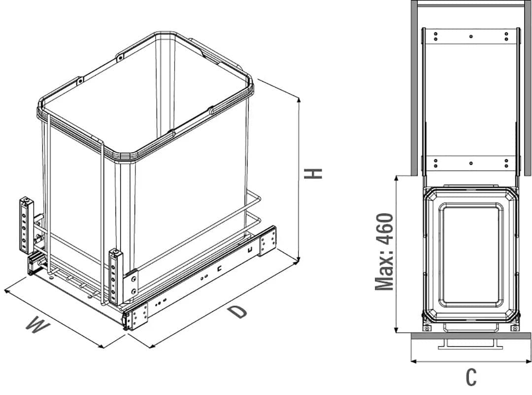 Poubelle coulissante détachable de 35L. Conçue pour un montage au fond du meuble, elle assure une installation stable et discrète. Son coloris anthracite s’intègre parfaitement aux cuisines modernes.