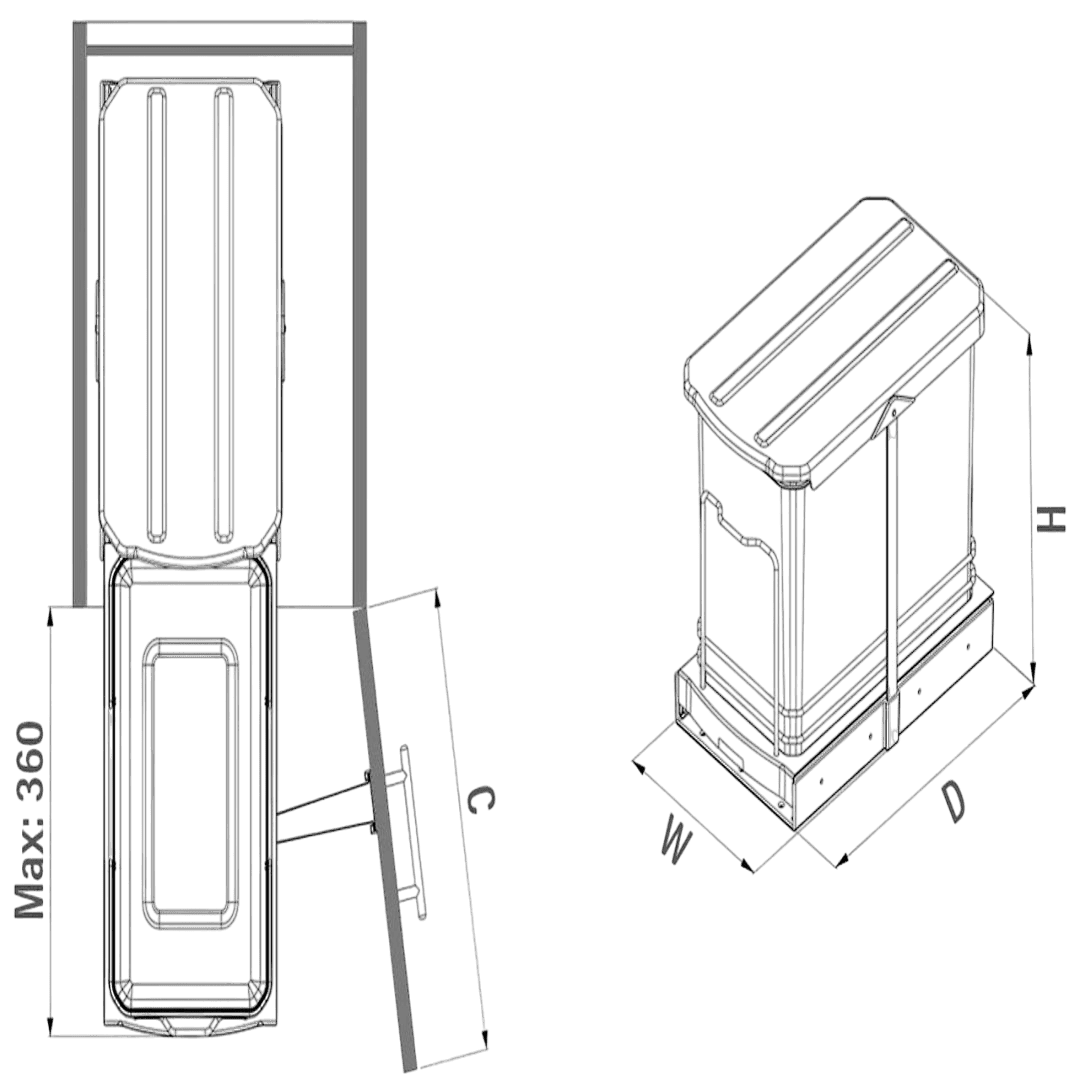Poubelle coulissante de 400 mm avec un bac de 24 litres et un couvercle automatique, en couleur anthracite. Discrète et pratique, elle s'intègre parfaitement dans les meubles de cuisine. Idéale pour un rangement organisé et moderne.