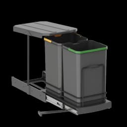 Poubelle coulissante de 400 mm avec deux bac de 12 litres et un couvercle automatique, en couleur anthracite. Discrète et pratique, elle s'intègre parfaitement dans les meubles de cuisine. Idéale pour un rangement organisé et moderne.