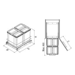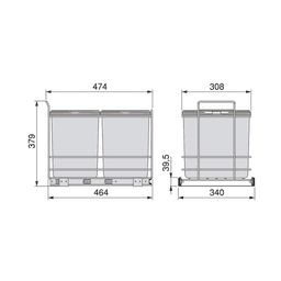 Poubelle coulissante détachable 2x16L, Anthracite.
