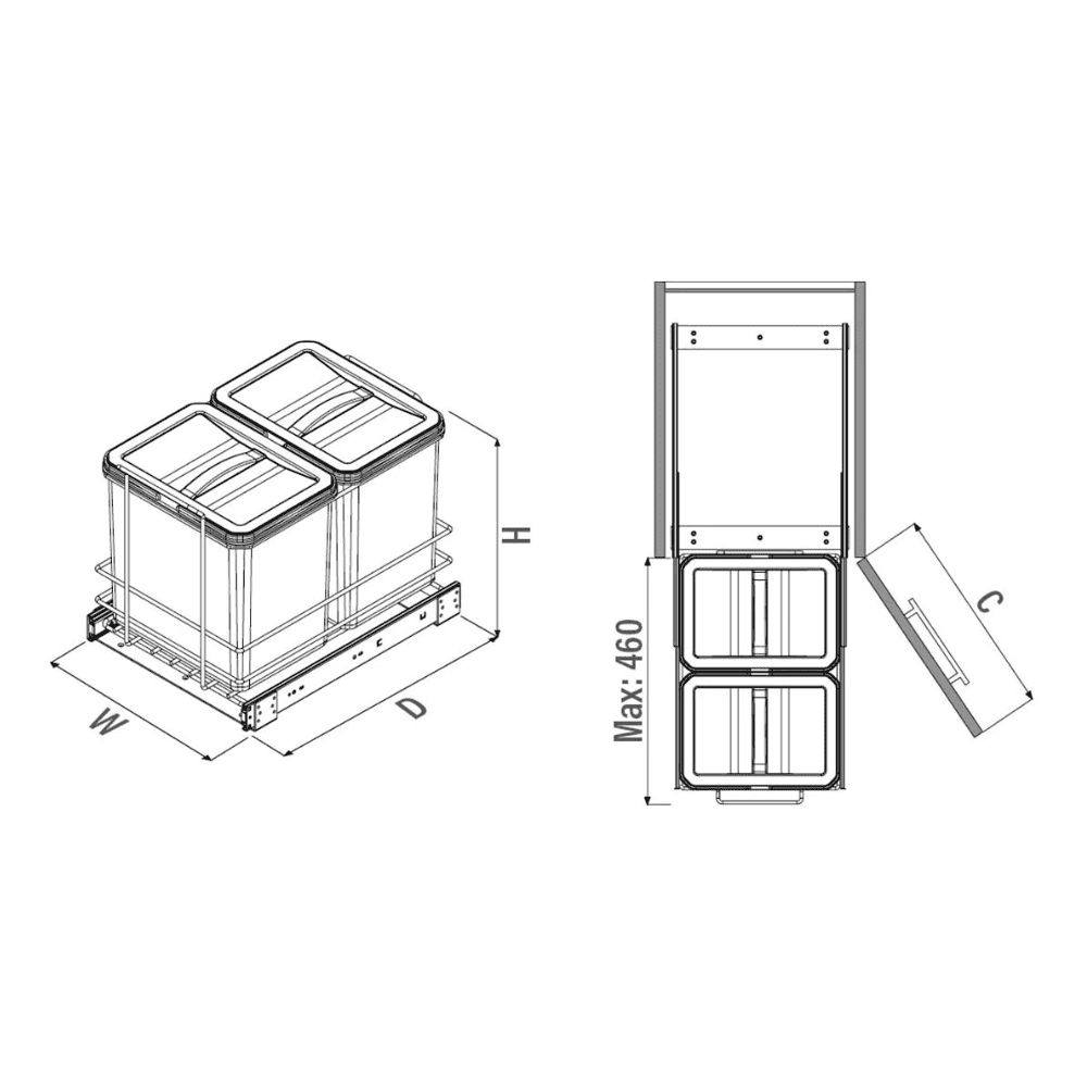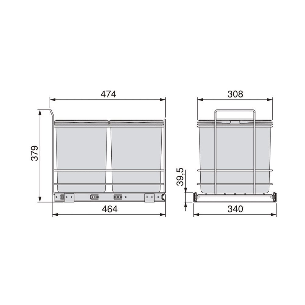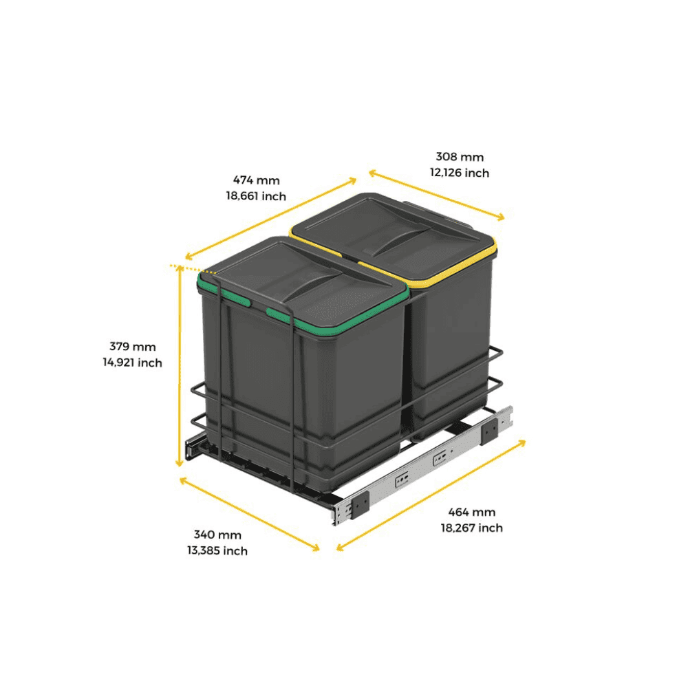 Poubelle coulissante détachable de 2 x 16 litres. Son montage au fond garantit une installation stable et discrète dans vos meubles. Grâce à son système coulissant, elle permet un accès facile et rapide, tandis que sa finition anthracite élégante s'intègre parfaitement à tout type d'intérieur.