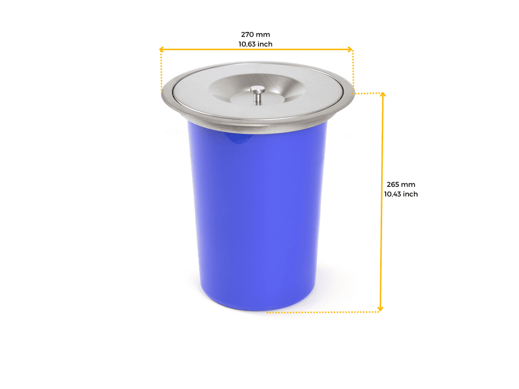 Poubelle de plan de travail pour cuisine avec couvercle en acier inoxydable, capacité de 7 L et intégration facile dans le plan de travail. conçue pour s’intégrer directement dans le plan de travail, elle nécessite un espace intérieur minimum de 270 mm et un trou de 240 mm pour l’installation