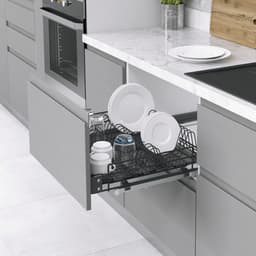 Le tiroir porte-assiette et verre coulissant est conçu pour un rangement pratique et organisé de votre vaisselle. Son système coulissant permet un accès facile aux assiettes et verres, tout en optimisant l’espace de votre cuisine. La finition anthracite apporte une touche moderne et élégante à votre aménagement.