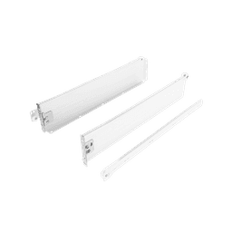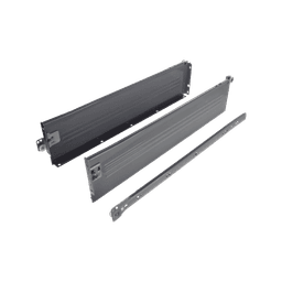 kit tiroir Métal Box, équipé de coulisses à galets, offre une solution complète pour monter un tiroir robuste et esthétique. Il comprend deux tringles, deux parois latérales, des supports réglables en hauteur pour la face avant et un support pour la face arrière.